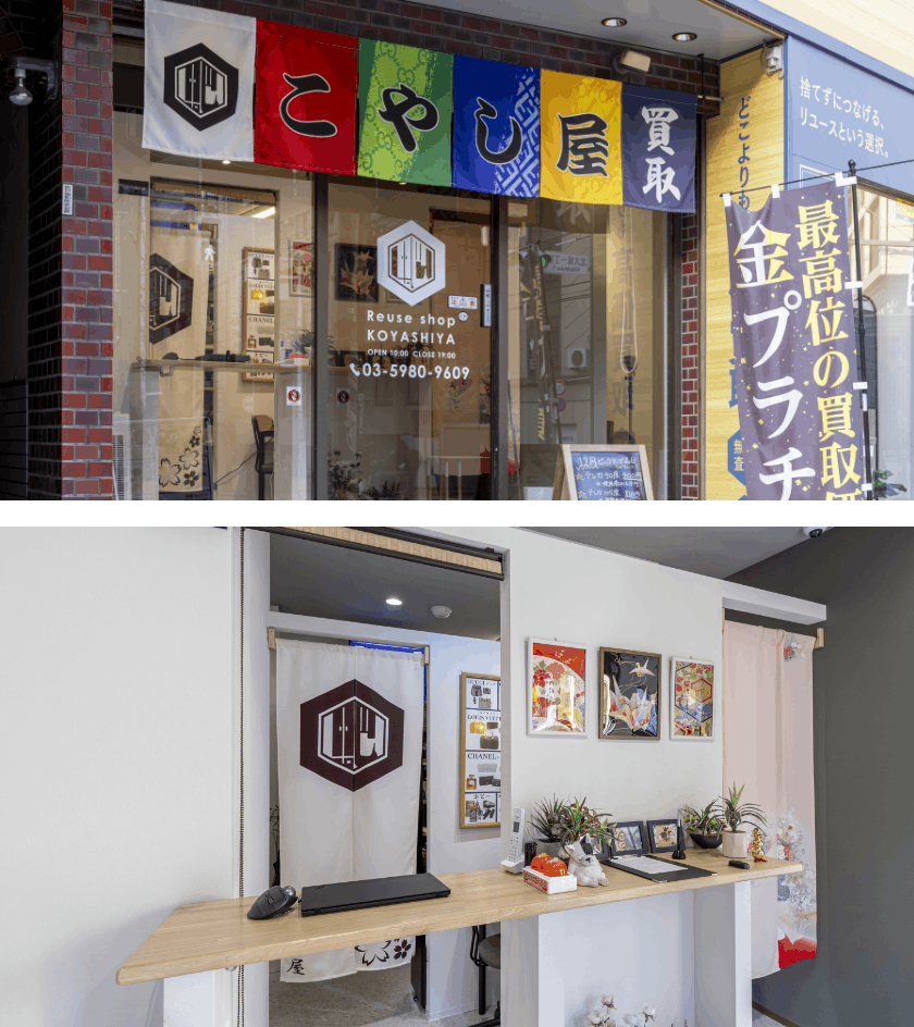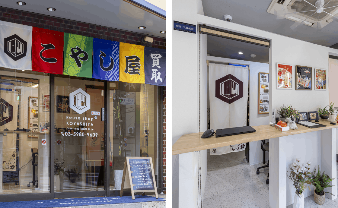 「こやし屋」は、6色ののれんがトレードマーク。アクセスのよい駅前などに展開している総合買取店です。貴金属、ブランド品、宝石、お酒、カメラ、時計、骨董で幅広い品物を買い取り、再流通させています。